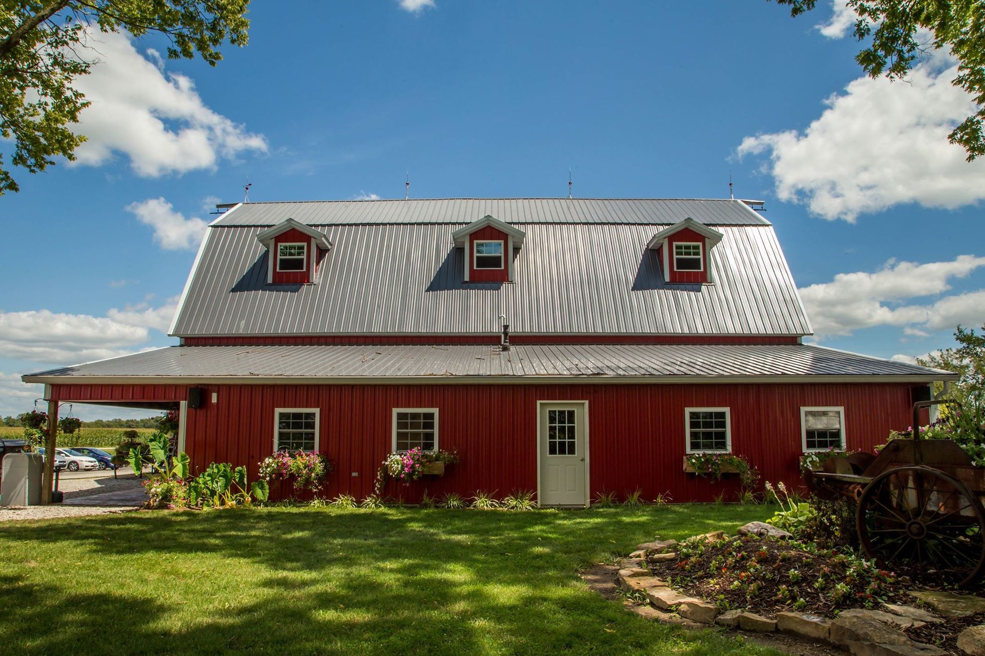 Our first year (2014) we only had 3 weddings. In 2015, in the back free stall shed which is attached to the main barn we tore out pens prior to pouring new concrete and that opened up more room for a main reception area and dance floor. That year we had 13 weddings. In 2016 we had 20 weddings. We also were in the process of becoming zoned in 2015 through the county and they said we had to add ada restrooms that had to be completed by 2017 so in July of 2016 we began another addition to the east side of the free stall barn. We added restrooms, men and women’s dressing rooms, a bar area, and more reception area. In 2017 we removed the east wall of the free stall barn to open up the room to the new addition. In 2018, we added a 5 acre lake on the south side of the barn. In 2020, amidst the global shutdown due to Covid-19, we took the opportunity to enhance our facility. We upgraded our HVAC system and installed four spacious glass garage doors on the southern side of the barn, offering a picturesque view of the lake. Additionally, we adorned the reception area with an elegant white wood wall, complemented by multiple windows on the north side of the barn. To complete the transformation, we revamped the exterior of the barn with sleek new tin siding.